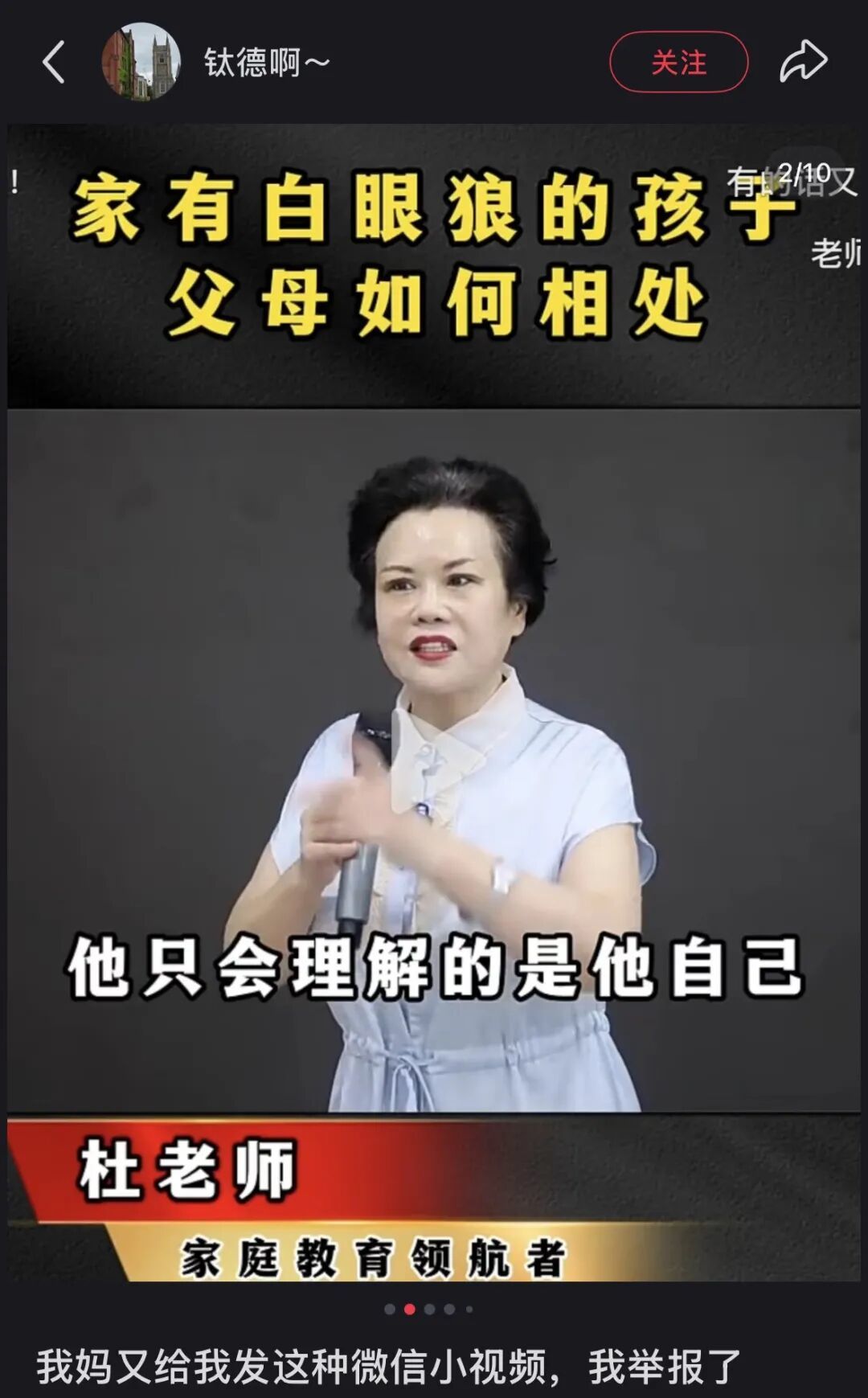 有图有真相。作者在发文时还会带上一张自己参加讲座的照片,画面中是典型的高知识分子女性形象,穿着剪裁得体的深蓝色西装外套,眼神里透着慈祥与坚定。